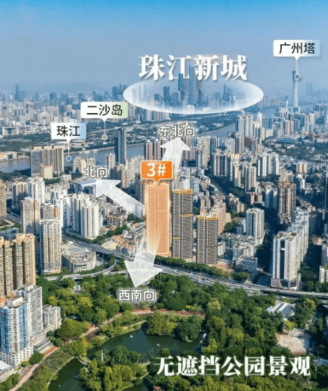 双景观资源加持,西南向 17 万方晓港公园(步行 5 分钟),东面高层眺望广州塔与珠江,是海珠老城少有的 “观塔 + 公园” 双景观项目。