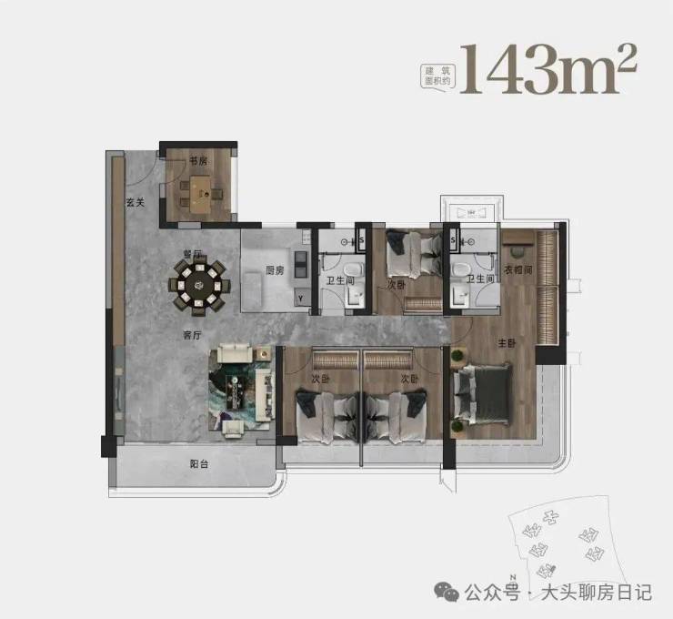 大户型143㎡,4+1布局能轻松满足大家庭的各种空间需求。由于面积足够大,搭配LDKB一体化设计,客厅更为宽敞,同时4开间朝南,房子也会更加明亮和通透。