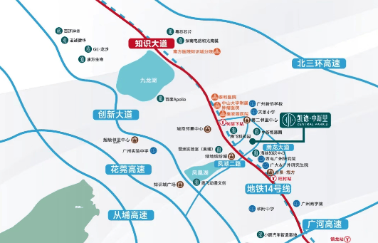 项目紧邻知识大道,便捷连接全城。步行600米即可到达地铁14号线何棠下站,快速通达广州主城区及科学城等地。
