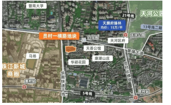 拿地时间:项目地块为员村一横路AT080523地块,当年经过多轮角逐,最终由保利集团以21.8亿总价竞得,楼面价5.7万/㎡,该地块当年位列广州地价TOP3,足以彰显其核心地段的稀缺价值。