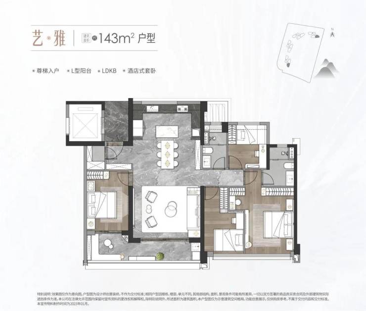 主力户型: 主打125㎡四房、143㎡四房以及180㎡以上的奢阔大平层,得房率均达81%以上。