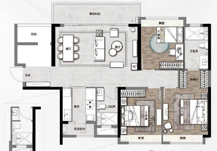 洺悦玉府拥有约35%的绿化率和约2.66的低容积率,属于低密度社区。最宽楼间距达到约160米,确保每户都能享受到充足的阳光和通风。“一环、两轴、四园、八境”的景观结构,打造了美观而智能的居住环境,提升了居住舒适度。
