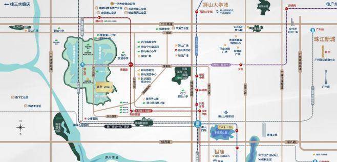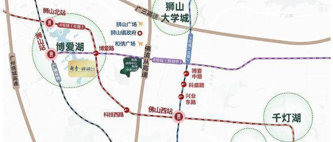 轨道交通方面,项目周边的地铁规划极具潜力。3 号线和 4 号线正在建设中,建成后将极大缩短居民前往佛山各区域的时间,方便日常通勤和出行。8 号线处于规划中,未来将进一步完善区域的地铁网络,提升居民的出行便利性。此外,距离项目 800 米处是佛山地铁 4 号线、8 号线的博爱湖站,居民可在此乘坐地铁畅达禅桂顺。距城轨狮山站约 900 米,可通过城轨快速前往周边城市。距佛山西站约 6 公里,从佛山西站乘坐高铁到广州南站仅约 20 分钟,轻松融入大湾区 1 小时生活圈,让居民能够便捷地享受大湾区内的各种资源和机遇。