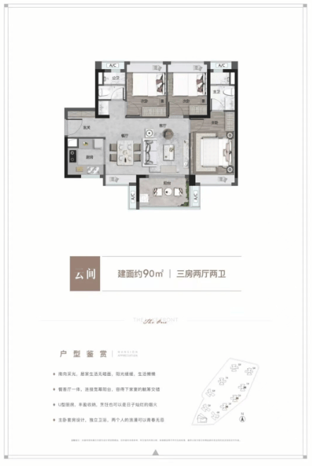 96平米三房两厅两卫:三开间朝南,部分户型赠送阳光房。