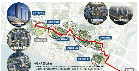 教育上,配建 15 所学校,包括完全中学、九年制学校、小学、幼儿园和托儿所,已确定引进华中师范黄埔实验学校,由本部直属管理,教育实力强劲。商业方面,西至设施生态公园,东联南海神庙,构建漫游活力轴,重点塑造两大综合商业地标及两大休闲文化街区,双岗 TOD 中心已确认引入华润万象系商业运营。周边还有鱼珠、大沙地等商圈环绕,商超配套齐全。医疗资源丰富,附近几所三甲医院均在 2 公里之内。此外,项目构建了完善的公园体系和慢行系统网络,并依托先进理念打造超级智慧链,提升生活品质。