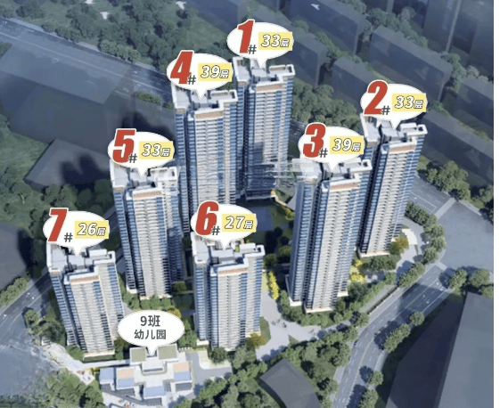 阅山组团规划 7 栋楼,层高 26 - 39 层不等,约 1300 + 套房源。楼栋采用围合式布局,保证栋栋观景与充足采光。产品设计注重采光通风,打造大面宽、长阳台、短进深户型,且阳台、飘窗、花池赠送,户型使用率超 100%。主力户型为建面约 76/87/105/116 平 3 - 5 房,76 平起做三房两卫,105 平起做四房两卫,满足不同家庭结构的需求。