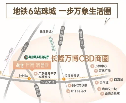 轨道交通: 项目距离地铁7号线万博站直线距离约600米,实测步行约8分钟。7号线作为广州“黄金走廊”,串联天河CBD、琶洲数字经济试验区、广州南站枢纽,通勤效率远超同区域竞品。更关键的是,万博站为已运营站点,而部分竞品宣传的“规划中地铁”仍需5-8年兑现,不确定性高。