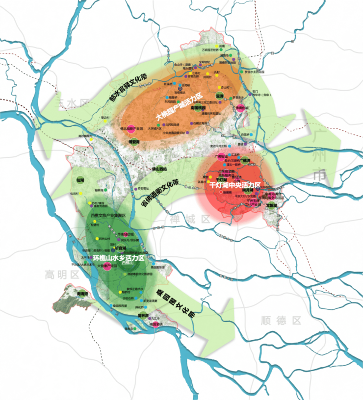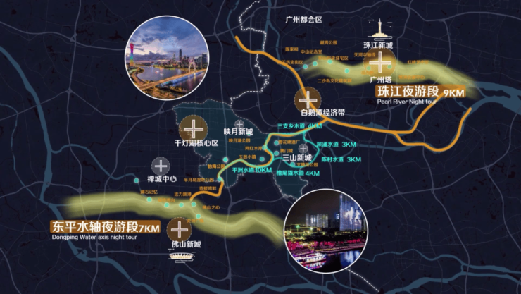 2022年11月7日,南海重磅发布《关于推动文化高质量发展的意见》,提出构筑“三带三区”文化发展新格局,启动“水上南海”发展计划,映月新城纳入千灯湖中央活力区。
