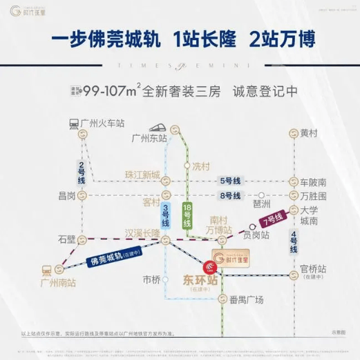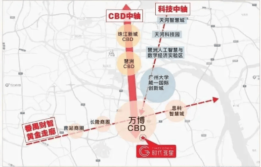 时代珑星坐落于广州番禺区万博 CBD 旁,距离万博核心区仅 3 公里多,可直接享受万博 CBD 的发展红利。交通方面更是项目的一大亮点,项目距离在建的城轨东环站仅 150 米,1 站即可抵达长隆站,换乘地铁 3 号线和 7 号线;2 站直达万博站,进而换乘地铁 18 号线,30 分钟就能抵达珠江新城,轻松满足日常通勤需求。自驾出行同样便捷,项目周边拥有 “五横五纵” 交通干线,“五纵” 包括广珠西线、东新高速、新光快速、华南快速、南沙港快速,“五横” 涵盖兴南大道、兴业大道、汉溪大道、广明高速、南大干线,多维路网覆盖,无论是前往广州各区还是珠三角其他城市,都十分顺畅。