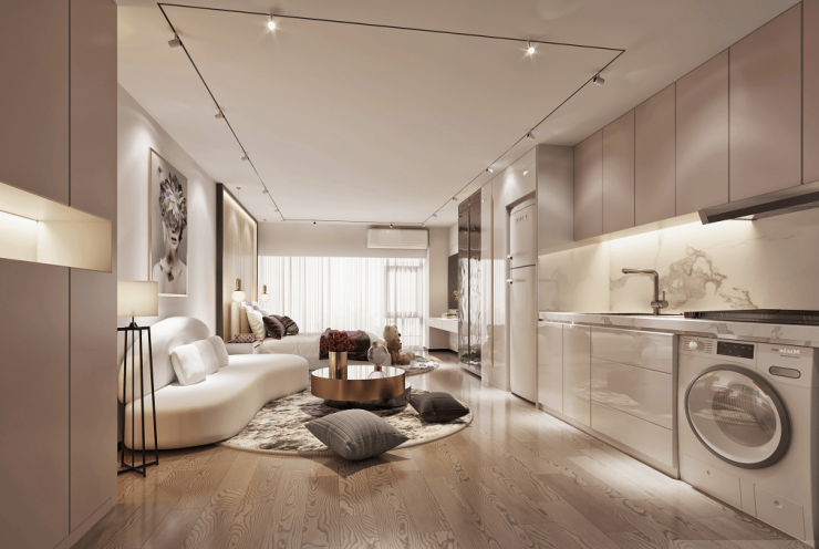 以迭代空间设计满足全家人的生活志趣,全部户型为大面宽、短进深、南北通透户型方正,餐客一体等设计。
