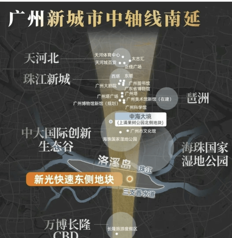龙湖亚伦·央璟颂坐落于广州市番禺区洛浦街新光快速东侧,占据城市新中轴线南延段核心位置,是洛溪岛近20年首宗新规江景宅地。项目周边交通网络发达:
