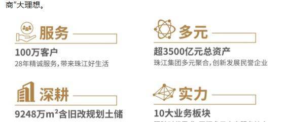 珠江投资集团自 1993 年成立以来,以促进可持续发展为目标,在全国布局城市更新、能源与基础设施、商业等十大业务板块。28 年来,集团积极服务社会,创造性地先行解决社会问题,提供前瞻性的解决方案,致力于实现 “中国综合社会服务商” 的宏伟理想,其雄厚的实力为珠江未来城的品质提供了坚实保障。