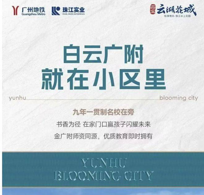 教育资源是品实・云湖花城的一大优势。小区内有金广附九年一贯制中小学及 18 班石门第一实验幼儿园,上学不用过马路,招生对象为云湖花城和天悦云湖 人户一致的家庭。白云广附云湖实验学校连续六年蝉联广州市中考平均分第一,2023 年中考平均分 741 分,2024 年平均分 746.8 分,750 分以上占 20%,700 分以上占 80% ,是广州中考成绩的佼佼者,还是白云区首个教育数字化转型示范单位,与网易有道合作开展信息学竞赛辅导,师资力量强,学校配套能给 9 分,真正实现目送式教育。