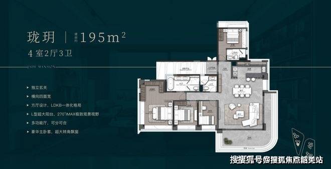 195㎡大平层:双套房、中西双厨、270°全景露台,专为高端改善客群打造。