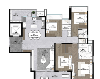 富颐华庭内部配建了一个占地约35万方的大型商业综合体,涵盖酒店、公寓、写字楼、购物中心等多种业态,旨在打造城市潮流地标。与此同时,项目周边还有优托邦、天河城、山姆会员店等八大商业广场,满足了居民多样化的消费需求。此外,项目内精心设计的园林景观,营造了一个自然和谐的居住环境,让生活回归自然。