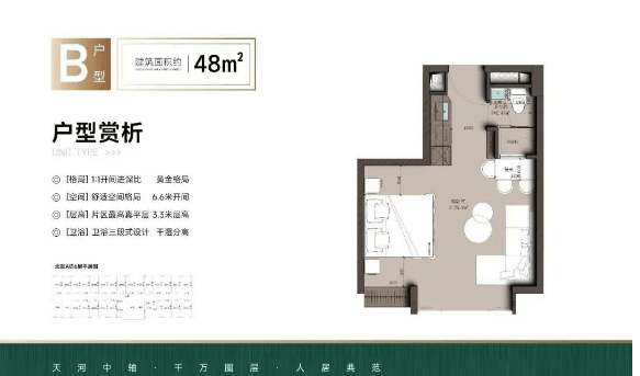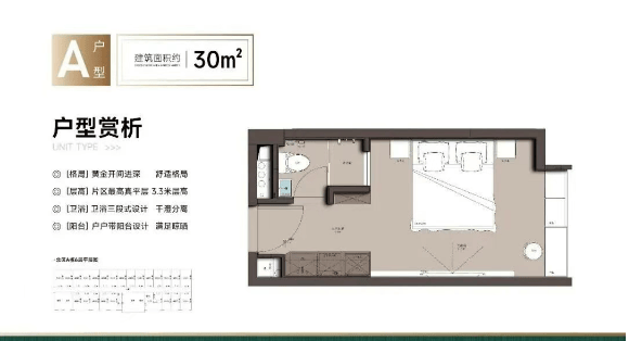 项目主打30-60平方米精致户型,精准切入都市青年、单身白领、小家庭及投资客群需求。平层产品以实用为主,动线合理,采光通风良好;复式33平方米单间则通过挑高设计实现功能分区,空间感更强。虽为商业公寓,但精装标准较高,采用现代简约风格,兼顾美观与耐用。值得注意的是,部分户型配备阳台,在同类产品中较为稀缺,提升了居住舒适度。由于不能使用明火,厨房多为电磁炉配置,更适合轻烹饪生活方式。这类产品总价门槛低、租金回报稳,特别适合首次置业者或资产配置型投资者。