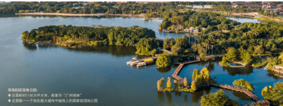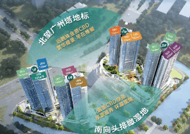 珑璟台南瞰超万亩海珠国家湿地公园,约 1100 万㎡城央绿洲近在咫尺,可通过地下地铁连廊无风雨、无温差步行约 5 分钟可达。同时,项目利用裙房将整体抬升近 20 米,北望珠城 / 琶洲 CBD、广州塔璀璨繁华,南瞰湿地自然生态风光,实现 “半城繁华、半城诗意” 的居住体验。沿途打造的开放式街角公园与社区园林无边界衔接,景观优美。