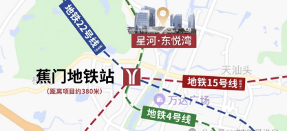 交通是城市的动脉,也是衡量地段价值的关键指标。星河东悦湾在交通配套上堪称“顶配”。项目距离地铁4号线蕉门站仅约610米,步行10分钟左右即可到达。4号线作为南沙第一条开通的地铁线路,早已常态化运营,串联起南沙与广州市中心,让通勤变得轻松便捷。