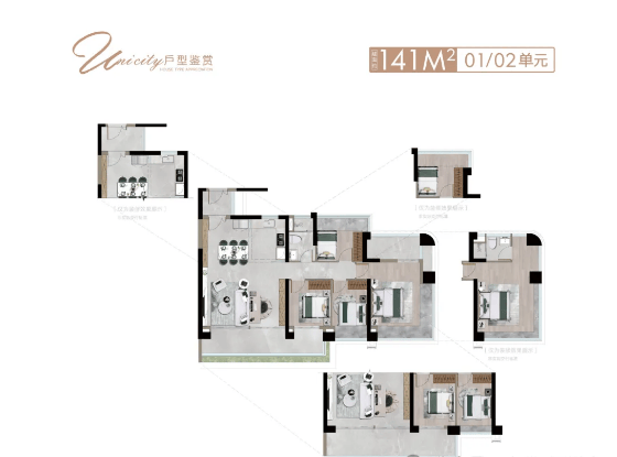 项目总占地面积约 5.2 万㎡,总建筑面积约 22.6 万㎡,规划 8 栋高层住宅(部分为 43-48 层超高层,1-2-6 栋为 32 层),总户数 1585 户,车位配比充足。作为茶滘旧改(总建面超 200 万方)的重要组成,项目容积率仅 3.5,绿化率达 47%,远超同板块项目 —— 社区内打造六大森林主题园林,连通花地河绿道公园与榕诚公园,部分楼栋楼间距达 88 米,实现 “江风与阳光入室”;建筑采用点式布局,榕府组团享南向无遮挡江景,景观面 IMAX 化,居住舒适度拉满。