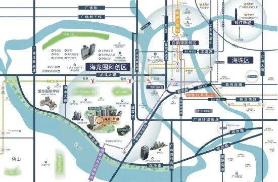 越秀天瀛位于荔湾区海龙科创区核心板块,虽常被市场归入“白鹅潭故事线”,但实际距离白鹅潭CBD核心区约10公里,并非其辐射第一圈层。项目更准确的定位,是广钢新城向西延伸的价值承接带——距广钢仅3公里,却以近乎“腰斩”的价格入市。2021年拿地时楼面价高达26641元/㎡,如今售价贴近成本线,折射出市场调整期开发商的务实策略。值得注意的是,该地块原为“越秀正荣天樾湾”,因合作方暴雷于2022年初更名,现由越秀独立操盘,品牌背书更为纯粹。区域虽非传统热点,但依托海龙国际科创城规划及珠江后航道生态资源,正悄然酝酿新一轮价值重估。