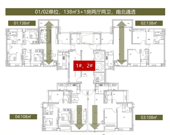 125-138㎡四房户型堪称“改善黄金户型”,超110米的楼间距保证了充足的采光与私密性,南北通透的格局让室内空气时刻清新。138㎡户型的约4.2m客厅面宽搭配阔景阳台,江景与园景尽收眼底;主卧采用套房设计,配备独立卫浴、衣帽间和270°观景飘窗,彰显主人格调;第四个房间可作为老人房或茶室,满足多代同堂的居住需求,让生活更加从容。