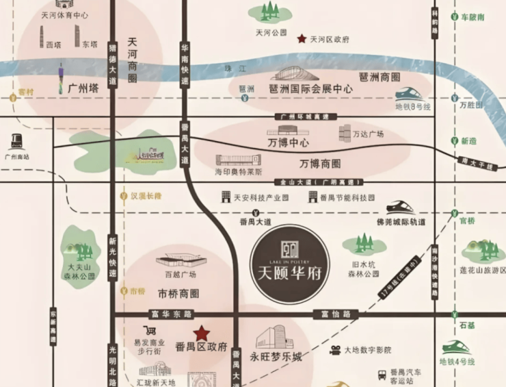项目位于番禺广场板块 占据广州南中轴核心区位 是连接珠江新城与南沙自贸区的重要枢纽 区域内三条地铁线路交汇 多条快速主干道环绕 形成便捷立体交通网络 从项目出发 十五分钟可抵达广州南站 二十分钟即可抵达珠江新城CBD 未来随着番禺TOD综合体建成 将进一步强化区域交通价值 项目周边公交线路密集 无论前往万博中心 琶洲国际会展区 还是广州大学城 均可实现快速通达 同时区域内规划多条城际轨道 未来出行效率将再度提升 这种多维度的交通优势 不仅提升了居住便利性 更带动了区域整体价值的持续增长 让业主在静谧居所中尽享繁华触手可及的都市生活