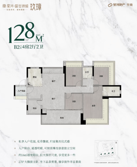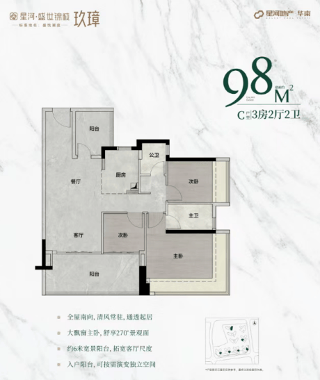 三期【玖璋组团】提供了多样化的户型选择,包括98㎡、110㎡和128㎡等不同大小的全四房设计。每个户型都强调空间利用效率和居住舒适度,特别是对于阳光和空气流通的设计更是独具匠心。