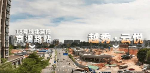 越秀·云悦位于广州大道北与怡新路交汇处,行政归属白云区,但与天河区仅隔一条马路,堪称“白云价格、天河配套”的典型代表。这一区位优势极为突出:向北可享白云区成熟居住氛围与相对友好的房价门槛,向南则无缝接入天河高端商业与城市资源。项目直线距离3号线梅花园站约800米,步行可达;更关键的是,其门口即为18号线北延段(广花城际)京溪路站(在建),未来1站抵广州东站、2站达冼村(珠江新城东翼)、3站至琶洲,还能直通中山、珠海,真正融入粤港澳大湾区1小时生活圈。这种“双地铁+跨区位”的组合,在广州主城区已属稀缺资源。
