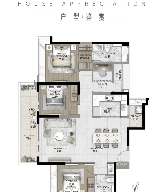 128㎡ 3+1房2厅2卫:双阳台对流,LDKG超长通厅设计,畅享健康生活,约13.9m超大南向采光面。