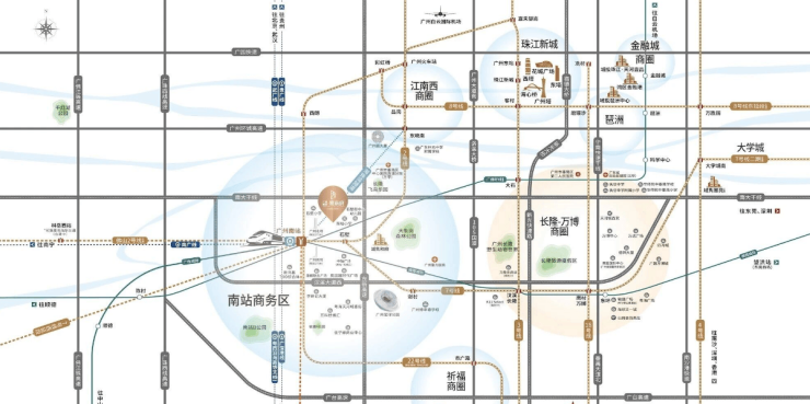 通过2号线、22号线、广佛环线等多维交通网络,可以直达珠金琶、白鹅潭、海珠等多个重要区域。