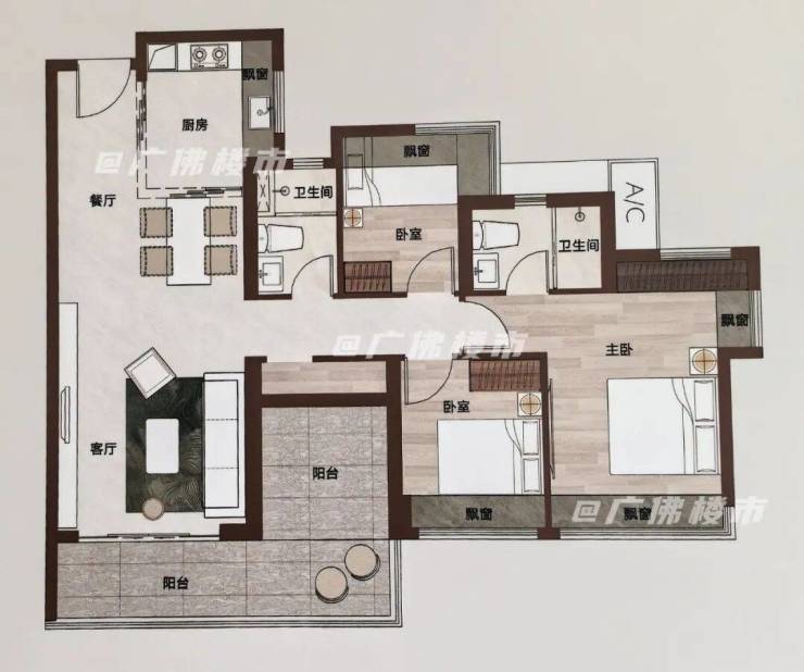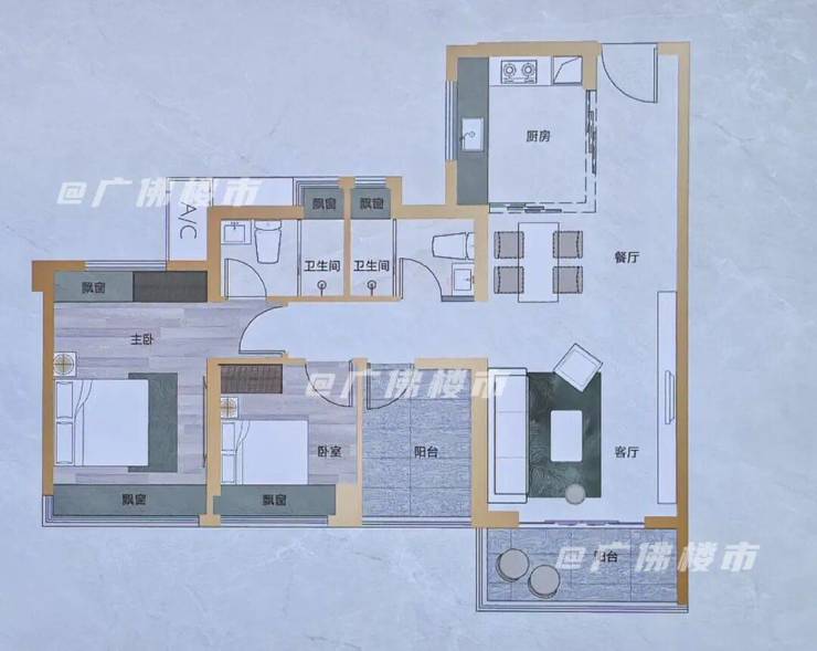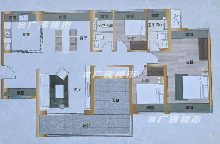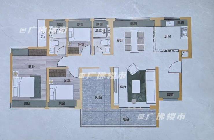 130㎡四房,带独立入户玄关,餐客厅相连,餐厅带飘窗,南北对流,阳台连通次卧,长约6.7米,主卧带双飘窗,也做到南北对流。
