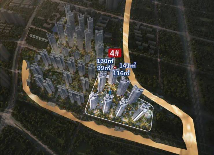 首推4号楼,主打建面约99/116/130/141㎡,新规产品,3梯4户,全部落地飘窗。