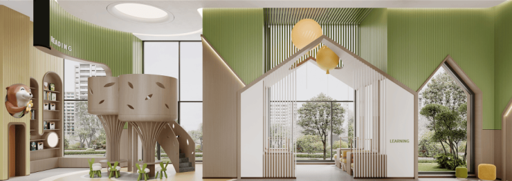 【颐府】配置了双会所,星级下沉会所(明德会),健身房、私宴厅、艺术书吧、瑜伽室全配,颐境会则分龄打造童悦、墨憩双主题场域,满足全龄业主生活空间。