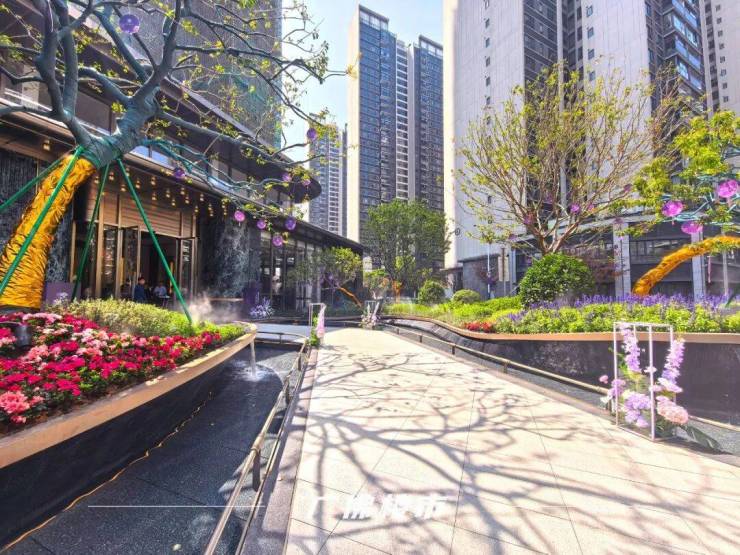 抵达现场,第一眼看到是社区主入口的颐境门庭,繁花簇拥、山石叠翠、流水潺潺,一步一景间尽显雅致意境。