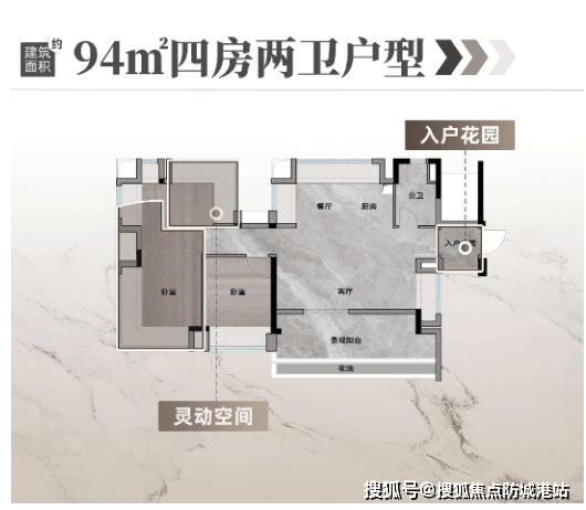 建面约94㎡高层四房:主打刚需改善,户型设计灵活多变,最大特点是高度自由,预留270度双边采光边厅,可保留为全景舱客厅,提升空间通透感与景观视野。客厅开间约4米,尺度可比肩120㎡以上的大户型,空间宽敞舒适,适合家庭聚会、休闲娱乐;户型布局合理,动静分区清晰,卧室采光充足,卫生间干湿分离,兼顾实用性与舒适度,适合三口之家、四口之家居住,满足家庭成长型需求。