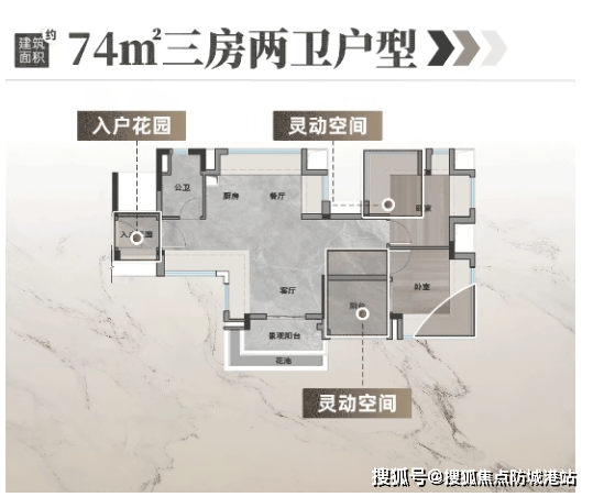 建面约74㎡高层三房:该户型是老黄埔新盘的小户型空白点,主打刚需上车,户型紧凑实用,最高使用率可达130%,完全不输同期产品。户户朝南,拥有南向园景+北向山景双重视野,采光通风极佳,是目前老黄埔80㎡以下面积内,唯一能做到南北对流的上车产品。餐厨空间可灵活改造,打横设计成一体化布局,超长操作台三面环绕约6.85米,可容纳六人聚餐,搭配一面宽约2.9米的全明山景窗,提升居住舒适度,适合单身贵族、新婚夫妻或三口之家居住。