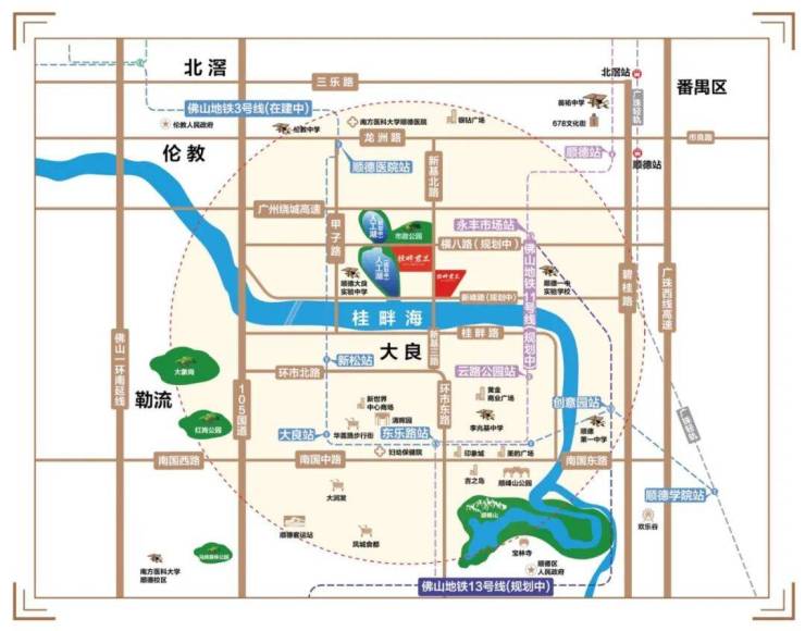 交通网络是衡量一个楼盘价值的重要指标,而美的桂畔君兰在这方面表现卓越。项目周边三地铁交汇,佛山地铁3号线已通车,规划中的11号、13号线将进一步完善区域轨道交通网络,实现广佛无缝对接。自驾方面,龙州路、广州绕城高速、佛山一环、105国道等七纵三横路网全方位联通,构建起立体式交通枢纽。无论是前往广州珠江新城、琶洲商务区,还是佛山禅城、南海中心,均可快速抵达,通勤时间大幅缩短。广珠城轨的接入,更让项目成为连接粤港澳大湾区的重要节点,商务出行、旅游休闲皆无障碍。对于经常往返广佛两地的家庭而言,这样的交通条件无疑是巨大的加分项,让生活与工作之间的切换变得更加轻松自如。