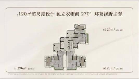120㎡四房:低区单价8.7万/㎡起,高区冲破9.9万/㎡,总价较同板块嘉裕公馆低3万+/㎡。LDKB一体化设计,270°弧形落地窗,主卧套间带独立衣帽间,实际使用率105%;