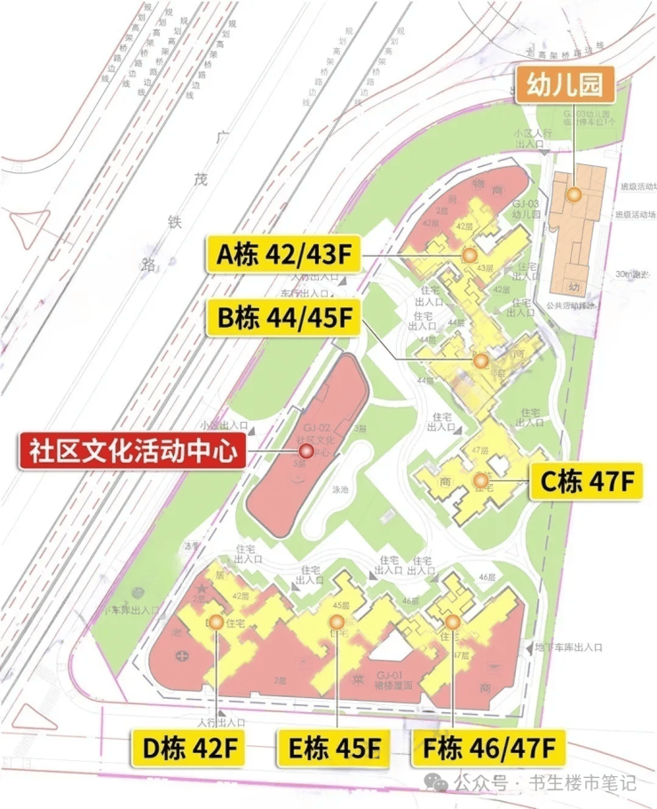 楼间距:35-45 米(超高层错位排布,保障低楼层采光≥3 小时 / 天)