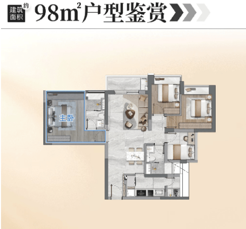 南向优先:89㎡、98㎡户型四开间朝南,南向面宽达 10.2 米,比同面积竞品多 1.5 米,采光、通风、景观最大化。