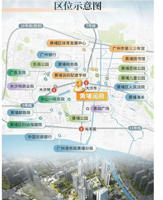 黄埔润府距离地铁5号线和7号线换乘站大沙东站仅300-400米,步行即可到达。这两条地铁线贯穿广州东西南北各大商务区,极大地提升了出行的便捷性。此外,项目周边还有黄埔大道和鱼珠隧道(在建中),方便居民快速前往珠江新城、金融城等地。未来规划中的黄埔高铁站将进一步增强区域的交通枢纽地位。