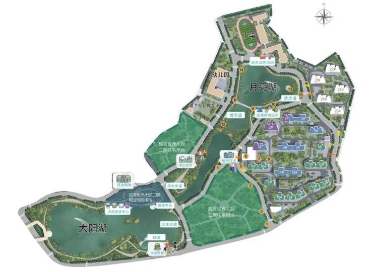 休闲娱乐:项目内部奢侈地打造了一个约2000平方米的湖岸会所,设有恒温泳池、拳击室、瑜伽室、SPA生活馆等高端设施。外部则依托于太阳湖和月亮湖的优美环境,未来还将建设室内球类场馆和水上运动区,丰富业主的业余生活。