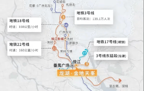 交通是城市的血脉,更是便捷生活的核心保障。龙湖金地天峯占位地铁3号线东延段海傍站地铁上盖,打造广州罕见的“电梯直达地铁站”TOD模式,无需走出社区,即可通过专属通道无缝衔接地铁,无惧风雨天气,实现出行零障碍。3号线东延段工程进度已达99%,全线开通后,从项目出发1站直达番禺广场站,畅享3号线、18号线、22号线、17号线(规划中)五轨交汇枢纽优势,无需换乘直达珠江新城,2站抵达琶洲CBD,快速联动万博、天河、海珠等核心商圈,通勤效率大幅提升。道路交通方面,项目毗邻亚运大道等城市主干道,构建“四横四纵”立体路网,四横涵盖亚运大道、市莲路、清河东路、金山大道,四纵包含番禺大道、南沙港快速、新化快速、华南快速,自驾出行畅达全城,30分钟覆盖广州核心城区。公共交通配套完善,周边多条公交线路环绕,接驳地铁站点与区域商圈,满足多元化出行需求。作为番禺区府新城的交通核心节点,项目依托多维立体交通网络,实现“1小时广州生活圈”,无论是日常通勤、商务出行,还是周末休闲、跨城往来,都能高效便捷,彻底打破地域限制,畅享都会生活的速度与便捷。