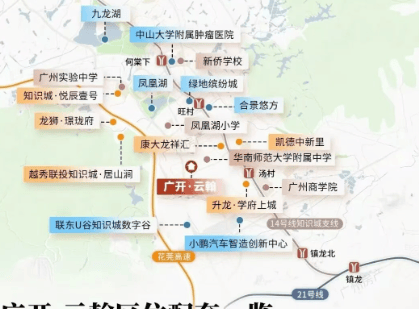 广开云翰位于知识城起步区,周边生活配套设施成熟完善。除了华附知识城校区外,还有多个购物中心、超市及餐饮场所,满足了居民日常生活所需。社区内部规划有多个绿化区域,营造出宜居的生活环境。