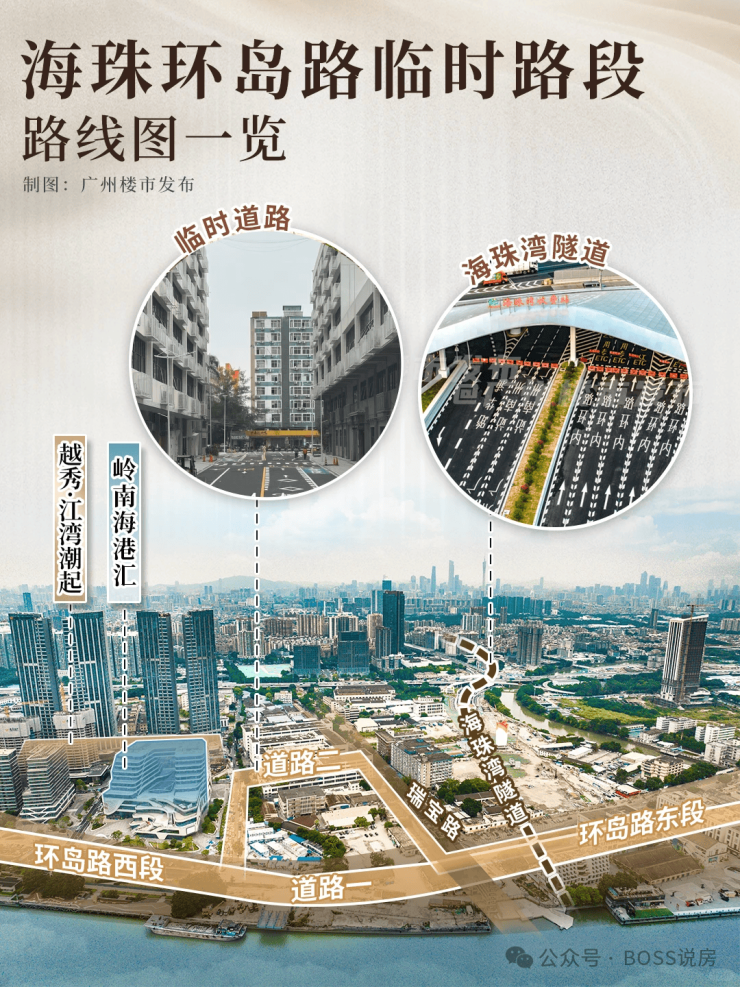 自驾方面,项目紧邻环岛路,可快速接驳广州环城高速等城市主干道,到珠江新城约 12 公里,到琶洲数字经济试验区约 15 公里,正常路况下 30 分钟内即可抵达;待海珠湾隧道全线通车后,15 分钟即可直达广州南站,跨城出行也极为便捷。同时项目周边 200 米内还有多个公交站点,覆盖多条公交线路,可满足日常短途出行需求,无论是日常通勤还是周末出行,都能实现高效畅达。