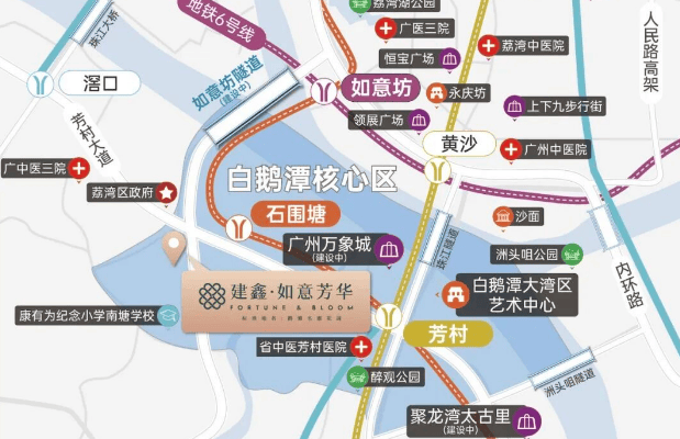 地段的价值,在于其占有的不可复制的“左右逢源”之利。如意芳华雄踞于荔湾区芳村大道中,地处“千年西关”与“千亿鹅潭”的历史与未来的交汇带上。项目向东,通过如意坊隧道(一期预计2025年开通)可快速抵达老荔湾,尽享荔枝湾、永庆坊、沙面岛的广府文化精髓与成熟配套;向西向南,则深入白鹅潭商务区核心,坐享万象城、太古里、大湾区艺术中心等世界级规划配套。这种“左手文化,右手未来”的独特区位,意味着业主既能浸润于广州两千年的城市文脉之中,又能同步享受未来十年城市发展的最大红利,实现精神归属与资产成长的双重满足。