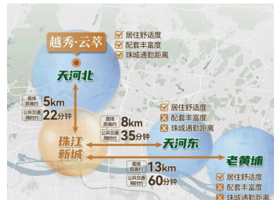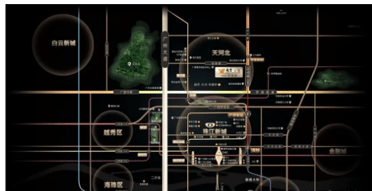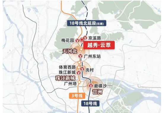 越秀·云萃的核心优势之一便是其优越的地理位置和便捷的交通配套。项目位于广州中轴之上,距离珠江新城直线距离仅约5公里,是真正意义上的CBD生活圈辐射范围。