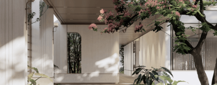 项目以“归心六屿”概念打造沉浸式景观体系,包括六大主题景观:集萃门庭、林影游廊、浮岛花园、漂浮泳池、儿童乐园及花园商业街区。园林设计复刻安缦酒店奢华灵感,结合珠江沿岸生态环境,形成无界视野、南北双景的景观体验。项目通过水系、植被与建筑的有机融合,实现自然与城市的交融,让业主在日常生活中亦能享受度假般的宁静与舒适,营造独特的高端住宅生态环境。
