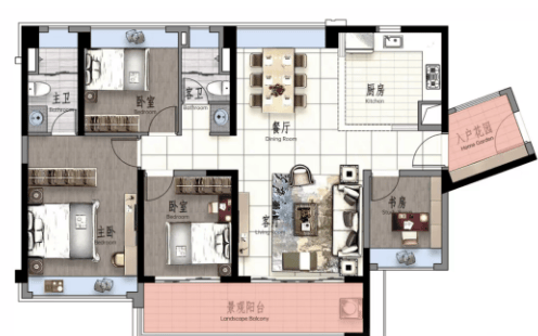 196㎡四房三卫:四开间朝南,采光充足,南北通透,空气对流健康森呼吸。