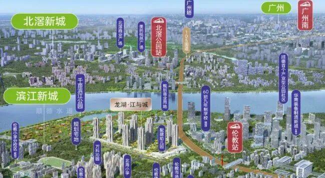 龙湖江与城的交通网络非常发达,除了临近佛山地铁3号线伦教站之外,还可以通过一桥到达番禺,出门即可上105国道,进一步提升了出行的便捷性。此外,项目距离广州南站仅9站地铁的距离,极大地增强了区域间的连接性,为居民提供了更多的出行选择。